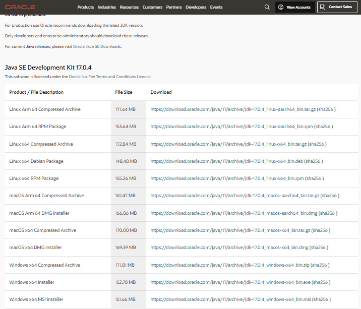 Java Archive Downloads - Java SE 17 (oracle.com)