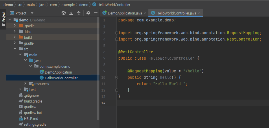 SpringBoot 프로젝트 설정이 되었으니 요청(Request)을 처리할 수 있는 Controller를 추가해 보겠습니다.