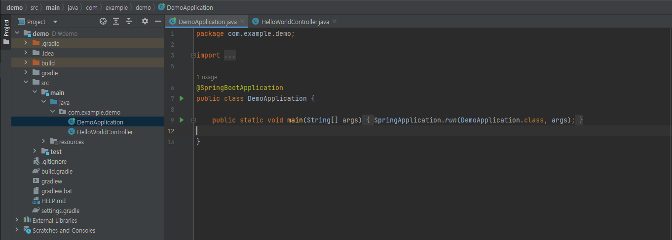 SpringBoot 프로젝트 설정이 되었으니 요청(Request)을 처리할 수 있는 Controller를 추가해 보겠습니다.