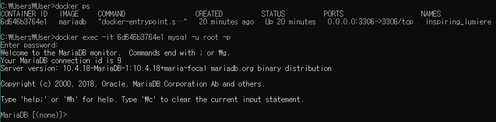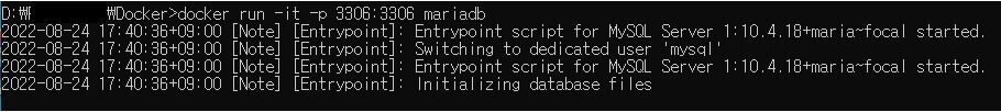 docker run -it -p 3306:3306 mariadb